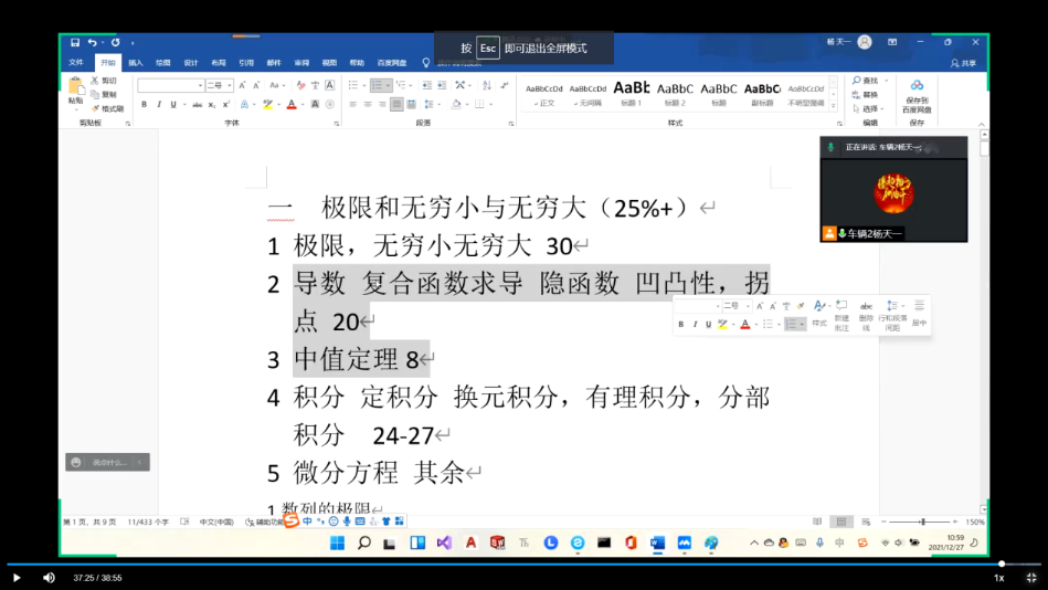 杏吧学生会举办线上学业帮扶活动,邀请20级车辆工程专业国家奖学金获得者杨天一同学进行线上高数辅导,帮助同学们梳理考试要点,并通过讲解例题的方式让大家进一步理解解题定理及常用方法。