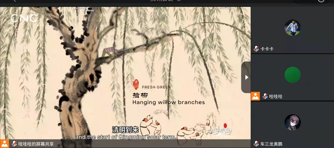随后,团支书李卓艺为大家讲解清明习俗以及其中蕴含的中华传统文化。他首先介绍了清明节的来源,随后带领大家观看《四季中国》,了解了茅山的清明习俗。李卓艺指出虽然全国各地清明习俗不同,但均有祭祖的习俗,而茅山将纪念,祭拜保卫家园的将士的习俗传承八百多年,值得我们学习,我们也应学习他们习俗中的文化内涵,时常缅怀保家卫国的烈士们。