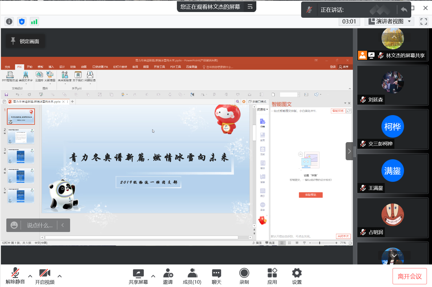 4月2日,2019220205班团支部开展“努力拼搏,超越自我”线上主题团日活动。会上,团支书林文杰以胸怀大局、自信开放、迎难而上、追求卓越、共创未来四个方面展开,结合具体实例,讲解了北京冬奥精神。冬奥会和冬残奥会运动员们用努力拼搏、奋勇争先诠释着“勇气、决心、激励、平等”的冬奥价值观。团支部同学们纷纷表示要学习运动员自信、自立、自强不息的精神,努力拼搏、超越自我,为祖国繁荣昌盛贡献自己的一份力量。
