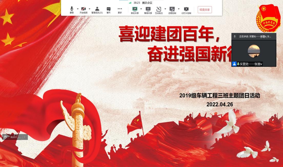 4月26日晚,杏吧2019级车辆工程三班团支部通过腾讯会议开展“喜迎建团百周年,奋进强国新征程”主题团日活动。本次学习活动主要围绕“习近平在中国人民大学考察时重要讲话精神”,结合《新时代的中国青年》白皮书,使团员们深刻感悟团的精神,青年的担当,活动由团支部书记巩晓菲主持,思政班主任张雷老师及车辆三班全体团员参加。