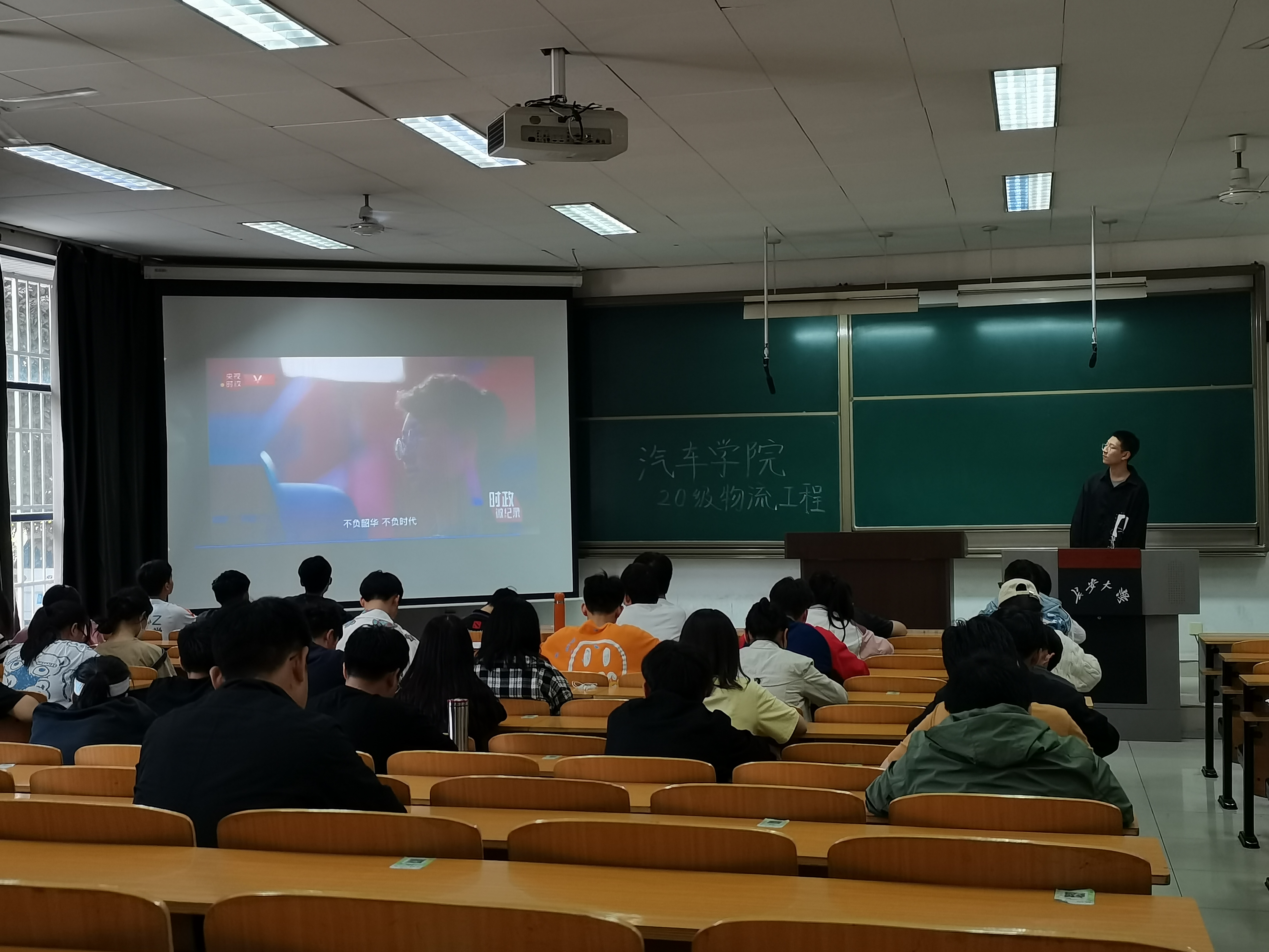 随着杨磊老师的讲话结束,本次团日活动正式开始,由物流一班团支书曹育林领学。他首先带领大家学习了团的百年奋斗历史,让大家对于团的认知有进一步的了解。接着观看了习近平主席亲自到大学参观的影片,总书记语重心长地对大家说,年轻人在学校这一步很重要,要心无旁骛,静下心来刻苦学习,既要读“有字之书”,又要读“无字之书”,努力练好人生与事业的基本功。青年是国家的未来和民族的希望,希望同学们肩负时代责任,高扬理想风帆,做有理想、有追求,有担当、有作为,有品质、有修养的“六有”大学生。
