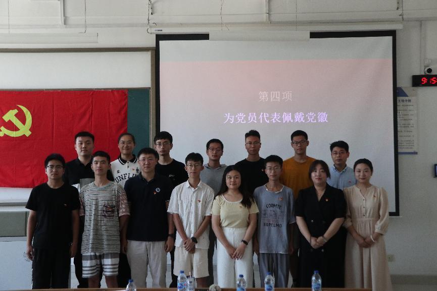 活动最后,各支部书记、毕业生辅导员为毕业生党员代表佩戴党员徽章并合影留念,与会全体人员一起重温入党誓词。