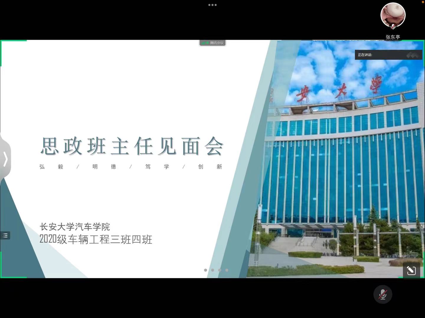 10月13日,2020级车辆工程三班、四班在线上举办了思政班主任见面会。见面会由车辆三班班长孙少驰主持,班主任庄程成、辅导员杨磊以及车辆工程三班、四班全体同学参会。