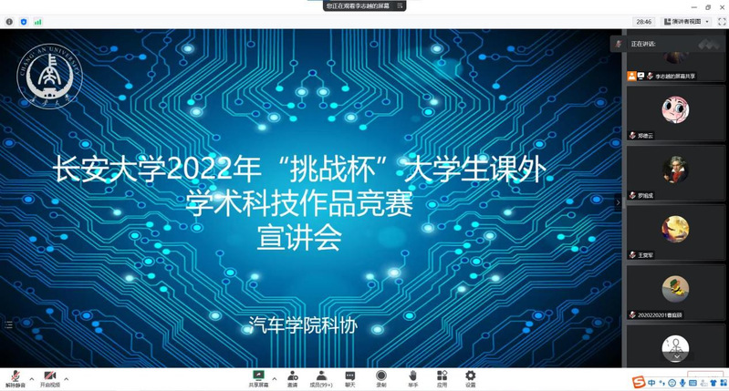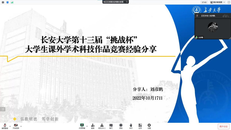 2022年10月17日晚,杏吧 杏吧 “挑战杯”大学生课外学术科技作品竞赛宣讲会在线上顺利举行。杏吧 大学生科技创新创业协会指导老师许超然、杏吧 2019级本科生刘彦鹏、王涔宇同学参与本次会议的宣讲。