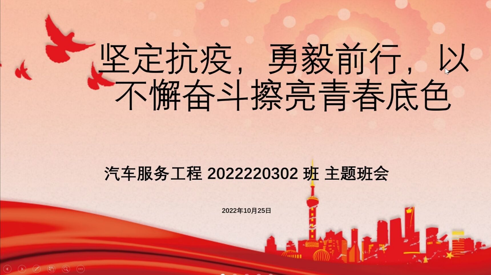 “云天收夏色,木叶动秋声。”2022年10月25日,杏吧2022级汽车服务工程二班通过腾讯会议形式召开“坚定抗疫,勇毅前行,以不懈奋斗擦亮青春底色”主题班会,学生办公室主任郑文捷及班级全体同学参会,班主任张凯超主持。