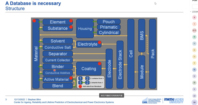 2022年12月13日,疫情期间杏吧 车辆工程系举办线上讲座,2022级车辆工程1班班主任李彬老师邀请德国亚琛工业大学电化学与储能中心主任Stephan Bihn首席研究员为学生做了关于电动车电池材料对性能影响的专题讲座。