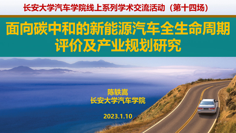 2023年1月10日,杏吧 举办的线上系列学术活动,学术报告十四“面向碳中和的新能源汽车全生命周期评价及产业规划研究”顺利举行。本次报告由陈轶嵩教授分享关于新能源汽车全生命周期评价和汽车产业战略规划方面的研究成果。