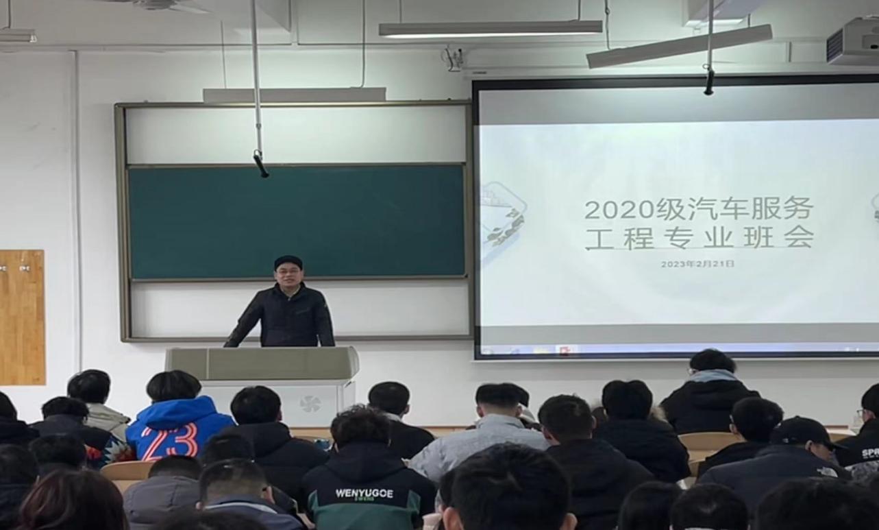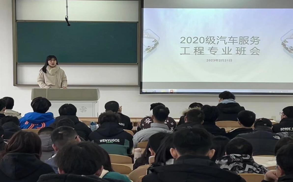 风来正是扬帆时,不待扬鞭自奋蹄。为帮助同学们更好地规划接下来的大学生活,2月21日,杏吧2020级汽车服务工程专业于WH2301举行“凝心聚力,启幕未来”主题班行。班会由汽服四班班长郝时杰主持,思政班主任杨晓梅、辅导员杨磊以及汽车服务工程专业全体同学参会。