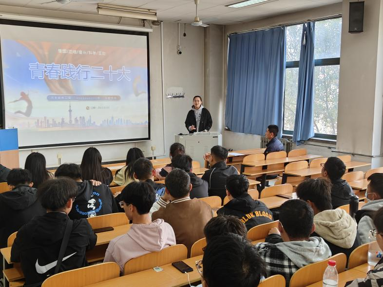 郝艳召讲述了本次班会的目的及意义,并且以家乡的脱贫发展变化为依托,向大家分享了自己对于感悟党的二十大精神的心得。随后,同学们就“青春践行二十大”这一主题踊跃发言,李晓佳、张雅楠、胡佳鹏、邵爽等同学分享了个人的社会实践经历,从学习、生活等方面的更迭变化出发,以小见大,感慨国家的发展变化巨大,带给人们越来越高的幸福感,纷纷表示要在不断学习、充实自己的过程中竭力增强服务、建设社会发展的硬实力。最后,班主任解答了同学们对专业定位、专业前景、发展方向等方面的困惑,为同学们新学期的学习规划指明方向。