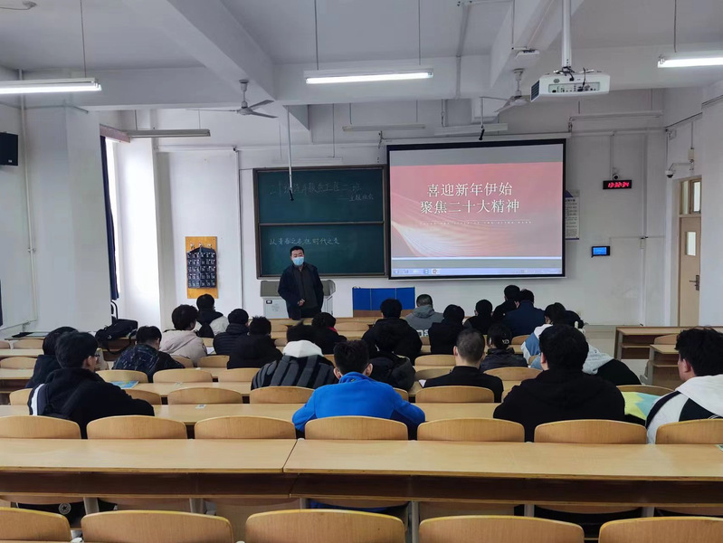 活动伊始,班主任辛琪老师首先进行发言。辛老师告诫同学们,党的二十大报告是对党和国家发展路线的明确概括,作为团员,我们必须深入了解党的二十大内容,学习党的二十大精神。随后,老师从职业生涯规划的角度强调了学习党的二十大的重要性:了解国家重点发展的方向并为之努力,可以拥有更广阔的就业前景,做对社会有用的人。最后,辛老师鼓励大家,在疫情防控政策开放的当下,同学们要走出宿舍,主动学习,锻炼身体,并鼓励同学认真复习,顺利通过期末考试。