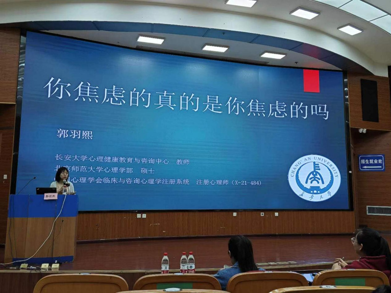 为缓解学生学习和生活的压力与焦虑,同时也为加强对学生心理健康知识的宣传和教育普及,5月4日晚七点,杏吧 邀请了杏吧 心理健康教育与咨询中心专职教师郭羽熙讲授《你焦虑的真的是你焦虑的吗?》主题心理知识讲座,讲座于渭水校区图书馆西侧裙楼一楼报告厅举办。参与嘉宾有杏吧 团委副书记杨倩,杏吧 彩虹心理协会指导老师王文杰,以及杏吧 本科生、研究生代表。