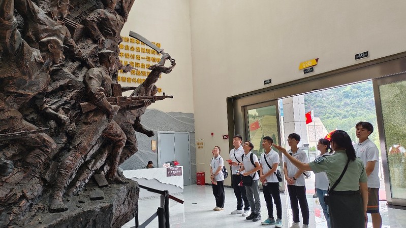 12日上午10时,实践队前往新圩阻击战陈列馆和湘江战役新圩阻击战酒海井红军纪念馆。在这里,实践队员们倾听了红军在新圩阻击战中的惨烈战斗故事,聆听了军民之间的浓浓情谊,致敬了陈树湘为苏维埃流尽最后一滴血的英勇事迹,怀着对革命先烈的崇高敬意瞻仰了红军重伤员罹难所在地酒海井。12日下午3时,实践队前往红军长征湘江战役纪念馆,馆内陈列着长征途中的文物和文献、《文塘之战》等油画、抢渡护电台场景故事视频、穿越茫茫草地等场景模拟以及主题雕塑等,通过瞻仰这些文物,实践队员们仿佛重新看到了数千红军指战员血洒战场,以血肉之躯筑起了抢渡湘江的生命通道的历史画面。16日上午8时,社会实践队走进百色起义纪念馆,伴随着参观,实践队员心中的感动和肃穆感油然而生,广大革命前辈英勇顽强、视死如归、前仆后继、敢于斗争的革命精神感染着每一位实践队员。16日下午3时,社会实践队来到粤东会馆(中国工农红军第七军军部旧址),寻着革命前辈的足迹。步入粤东会馆,沿着清水墙向前,数个领导人的雕像屹立小青瓦屋面下,他们严肃而威严,目光坚毅而执着。