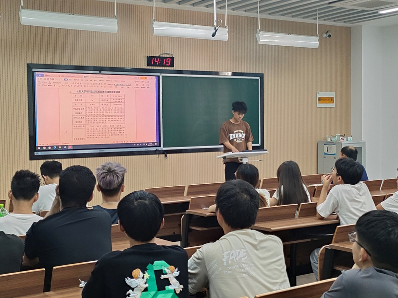 此外,学习委员李晨朝还介绍了本学年班级申请创建学校文明班集体的培育目标。根据学风建设、学业规划等要求帮助同学们树立新学期短期目标、长期目标,加强班级学风建设。