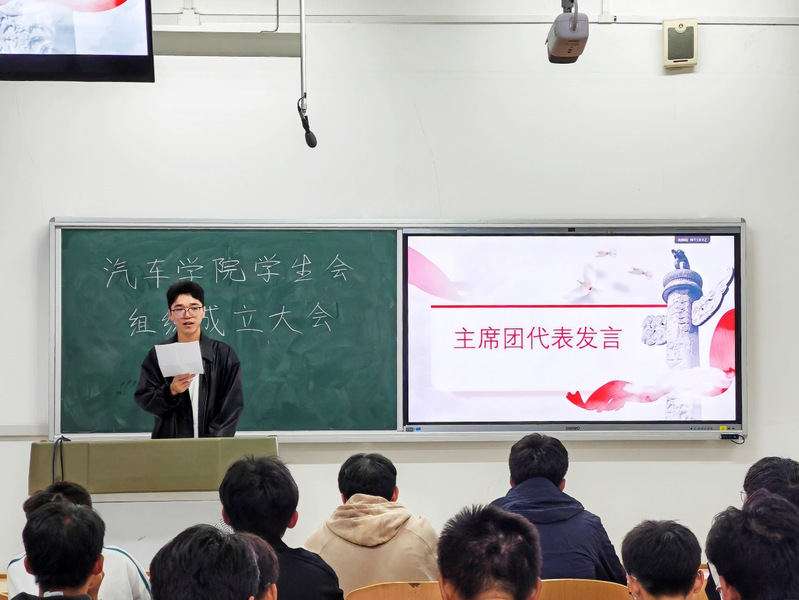 学生会执行主席梁辰宇对加入学生会的新成员表示热烈欢迎,他结合实际情况对学生会过去一学年的工作内容做出总结,并对新学年的工作计划做出安排,希望同学们能充分发挥主动性,发扬服务精神,为同学做实事,为群众解难题,共同创建学生会的美好未来。