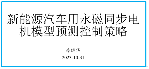 新能源汽车用永磁同步电机模型预测控制策略