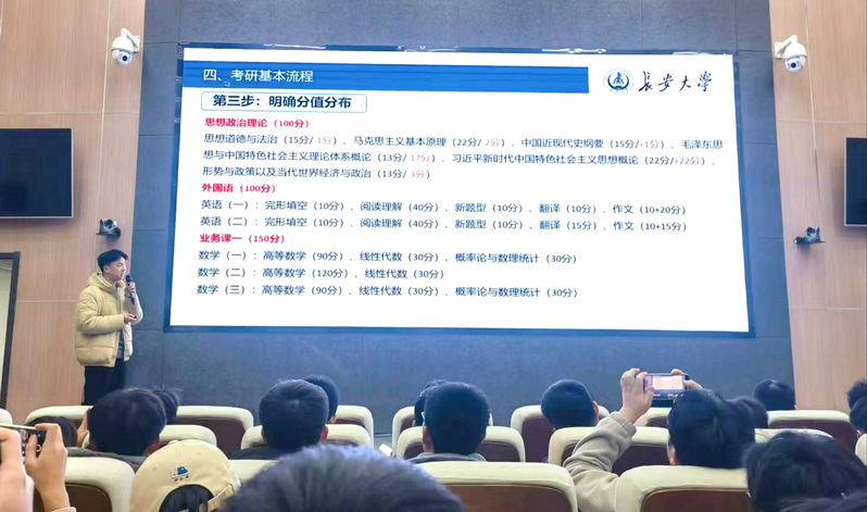 首先,张锦超老师从“什么是考研”、“为什么考研”、“如何备考”等问题逐一展开,通过历年考研数据并结合图表与案例,深入浅出地向同学们介绍了当前考研的背景与现状、相关概念、备考流程以及备考技巧等,让同学们对自己的考研规划有了更加清晰、深入的了解,学习到了许多实用的备考技巧和经验。