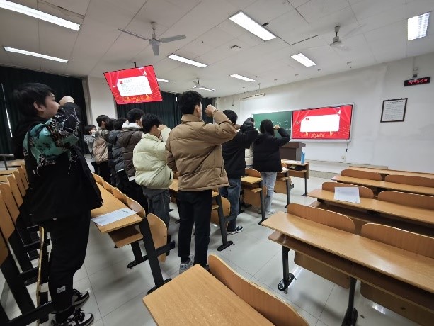 各团支部召开专题组织生活会,在扎实开展团支部专题学习基础上,采取集中学习和自学相结合的方式,组织团员认真学习领会习近平新时代中国特色社会主义思想;2022220201团支部组织歌唱团歌,并重温了入团誓词,带领团员同学们在靠近党、学习团的路上越走越远;2023220103团支部组织观看习近平主席2024年新年贺词,并结合自身实际生活与学习展开热议,以党员要求为自我约束,在学习生活上做自我反省。