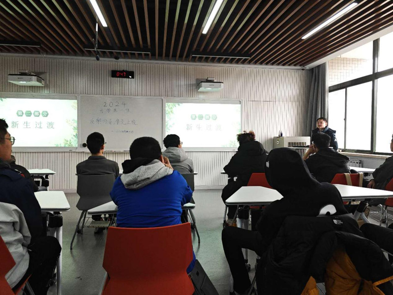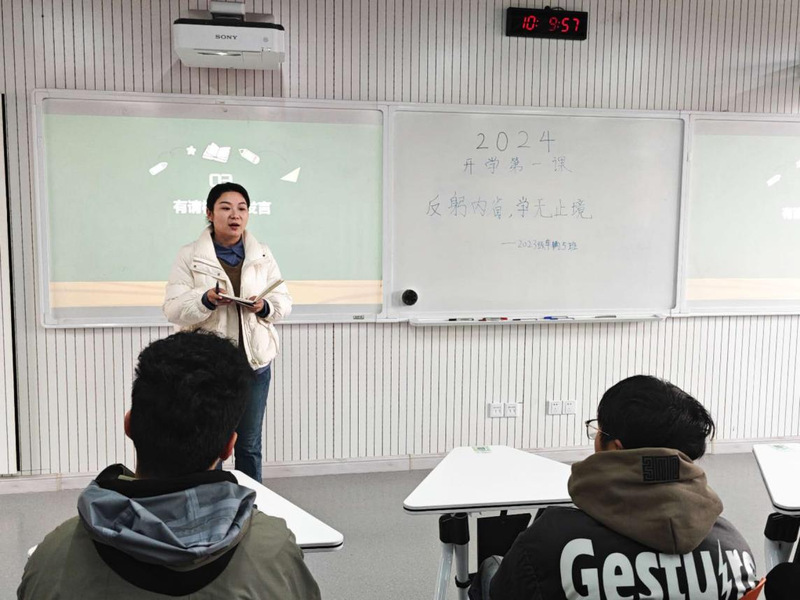 杨倩老师肯定了上学期同学们学习的成绩,指出仍需改进的不足,同时强调本学期同学们应当保持更高效的自主学习效率,认识到大学学习的重要性,对自己负责。