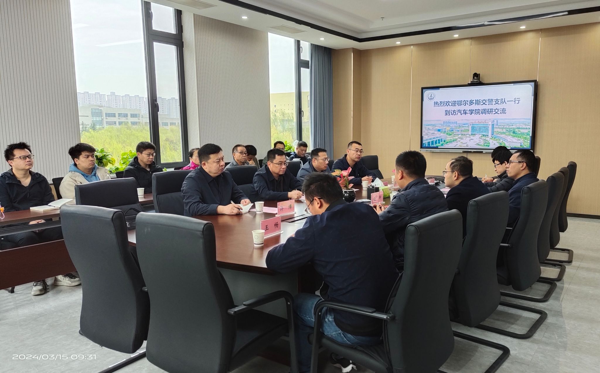 3月15日,鄂尔多斯交警队一行到访杏吧 调研交流。鄂尔多斯交警支队党委委员、副支队长赵刚,鄂尔多斯交警支队事故大队大队长罗建军,鄂尔多斯交警支队指挥中心副主任许博,鄂尔多斯交警支队交安办专干李强一行四人到访杏吧 调研交流,杏吧 杏吧 党委书记林贵宝、院长赵轩,副院长牛世峰,相关系室主任、教师代表参与了调研座谈会。