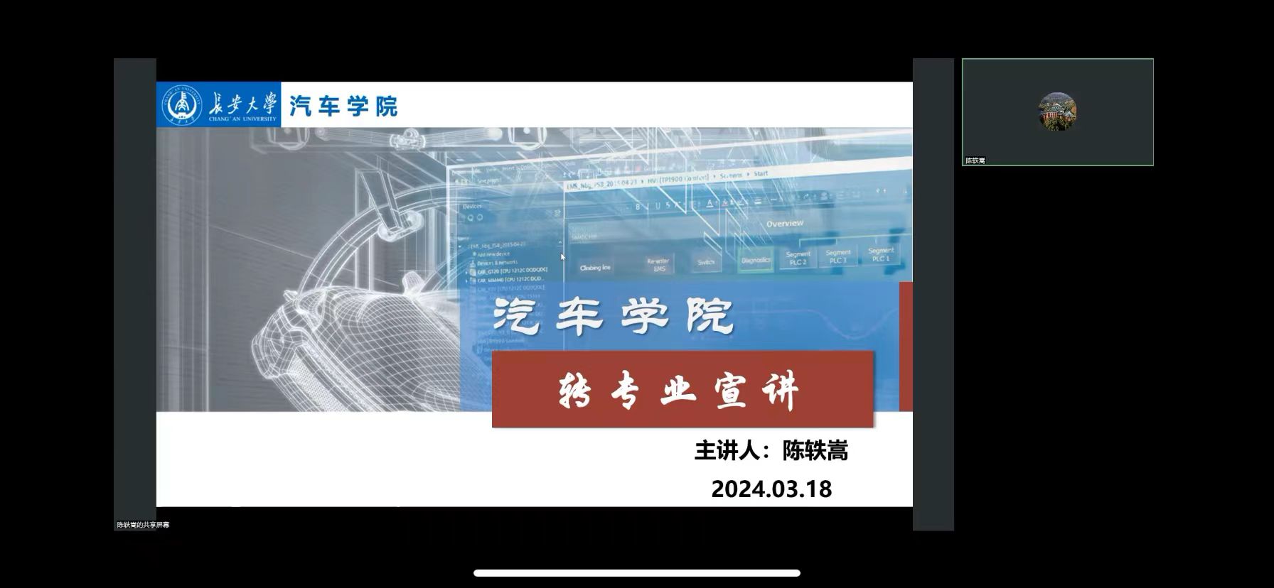 根据学校统一安排,为做好本科生转专业政策宣讲工作,帮助同学们更全面更深入了解杏吧 ,3月18日,杏吧通过线上方式举行2024年本科生转专业政策宣讲会。宣讲会由杏吧 副院长陈轶嵩主讲,各系室负责老师、教务负责老师参加宣讲,共有100多名学生线上参会。