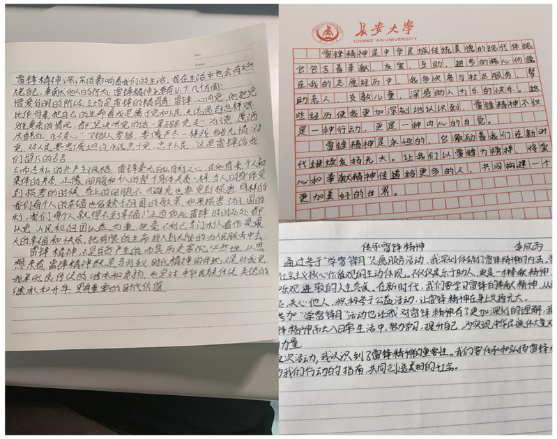 活动最后,支部成员纷纷表示要积极践行雷锋精神,从身边做起,从小事做起,肩负社会责任,传承中华民族美德,带动身边人一同践行雷锋精神。一些同学有感而发,也在纸上写下了自己的感想。只有通过这种方式,我们才能将雷锋精神发扬光大,为社会和民族的进步发一份光,献一份力。