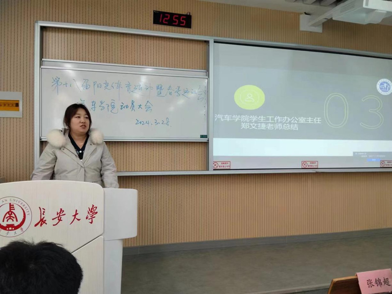 为全力迎接学校2024年春季运动会,充分调动运动员积极性,激发全体师生的运动热情,提高整体训练效率,杏吧于3月28日在渭水WX2106教室召开第十八届阳光体育运动会暨春季运动会动员大会,本次大会由杏吧文体协会指导老师张锦超主持。参会人员有杏吧学生工作办公室主任郑文捷、院团委书记许超然等全体辅导员老师和各团学组织负责人代表。