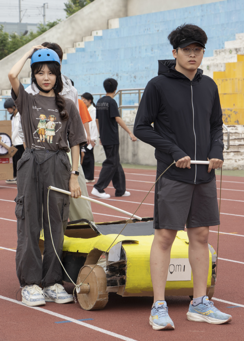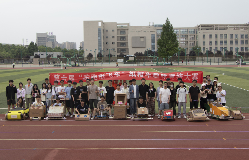 在前期的活动宣传中同学们积极响应,有来自不同杏吧 的同学组成的18支队伍报名参加比赛。经过初赛的线上投票评选,最终有14支队伍进入决赛。各队选手依靠用瓦楞纸板和pvc管制作而成的车来进行各项竞赛。
