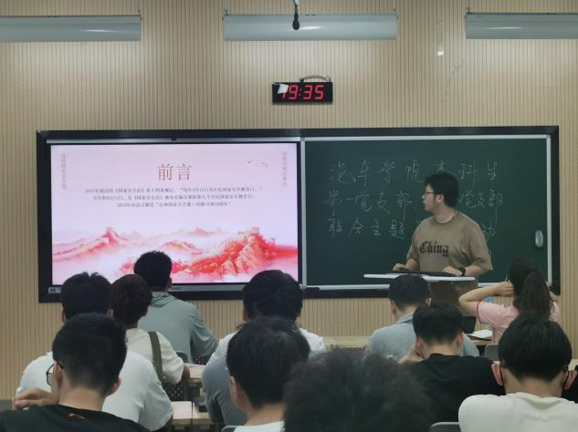 为深入学习贯彻习近平总书记关于党纪学习教育的重要讲话和重要指示精神,进一步严明政治纪律和政治规矩,为中国式现代化全面推进强国建设、民族复兴伟业提供坚强纪律保障。4月28日,杏吧本科生第一党支部和第四党支部在WX2203教室召开专题学习会议,认真学习了新修订的《中国共产党纪律处分条例》,并开展国家安全教育主题党日活动。会议由本科生第一党支部书记杨倩主持,支部全体党员参会。
