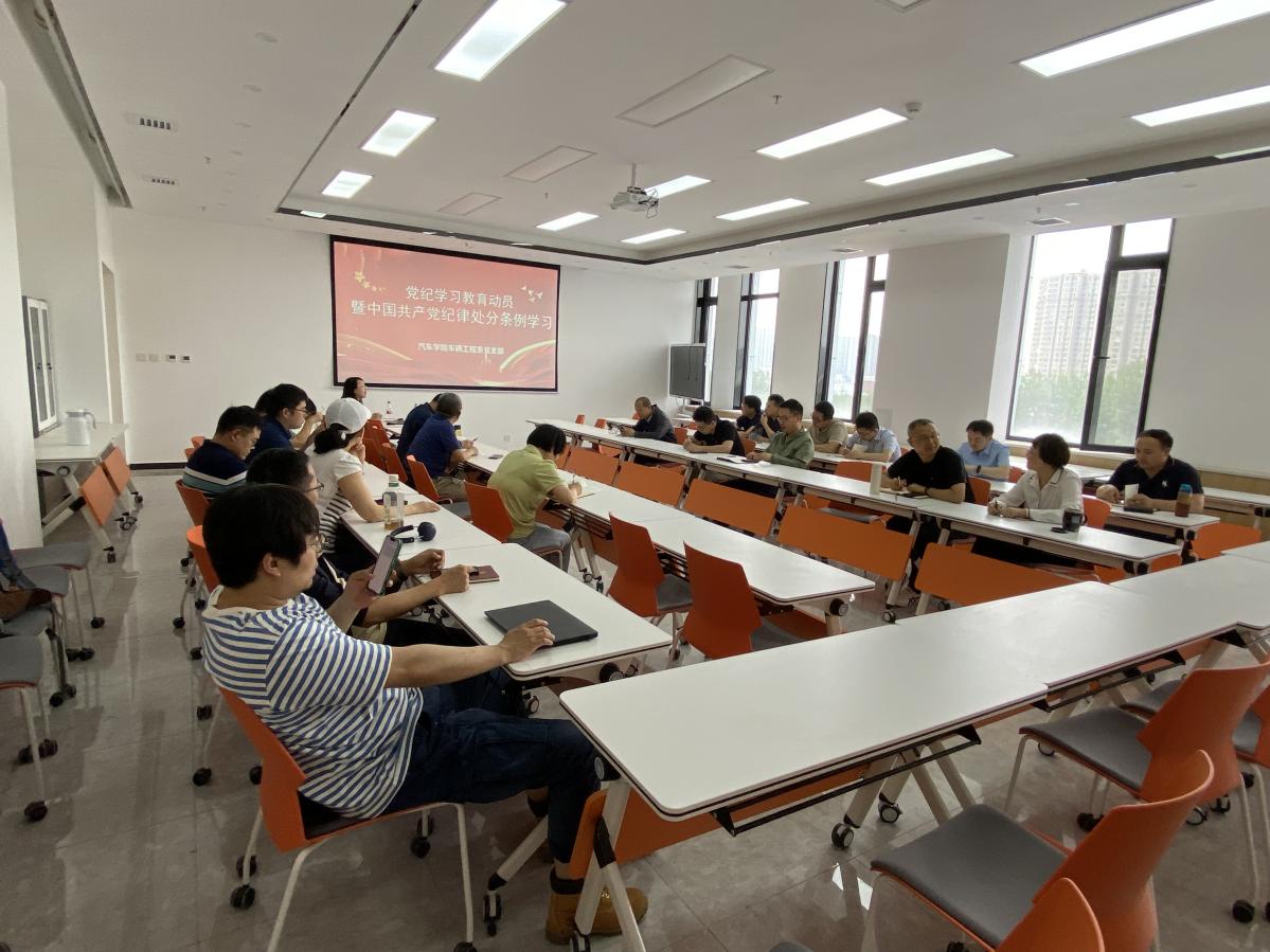 车辆工程系党支部在518会议室开展党纪学习教育动员和《中国共产党纪律处分条例》学习解读主题活动。