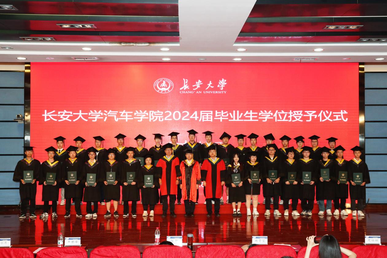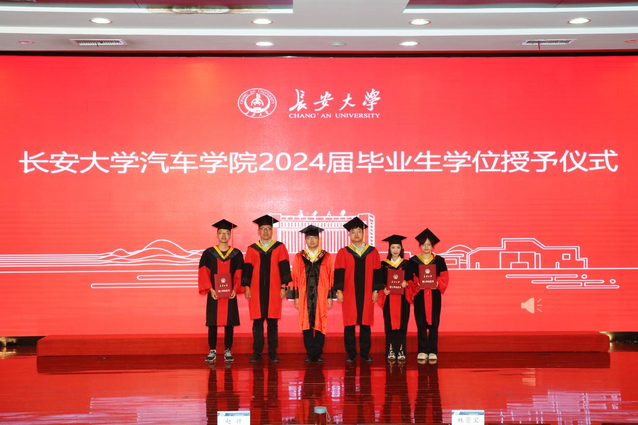 林贵宝宣读授予博士、硕士和学士学位学生名单,2024届毕业生身着学位服,按照专业、班级依次上台。杏吧 学位评定分委员会主席赵轩教授、委员牛世峰教授和陈轶嵩教授逐一为毕业生拨穗正冠,颁发学位证书,并合影留念。