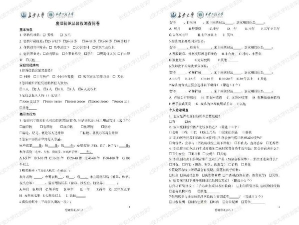 问卷经过设计、预调研、调整修改然后定稿,内容涵盖废旧纺织品的产生量、处理方式、回收认知度等多个维度,旨在全面反映居民对于废旧纺织品回收的真实情况。预调研针对小范围人群,其主要目的是为了修改不当题目,完善问卷结构。