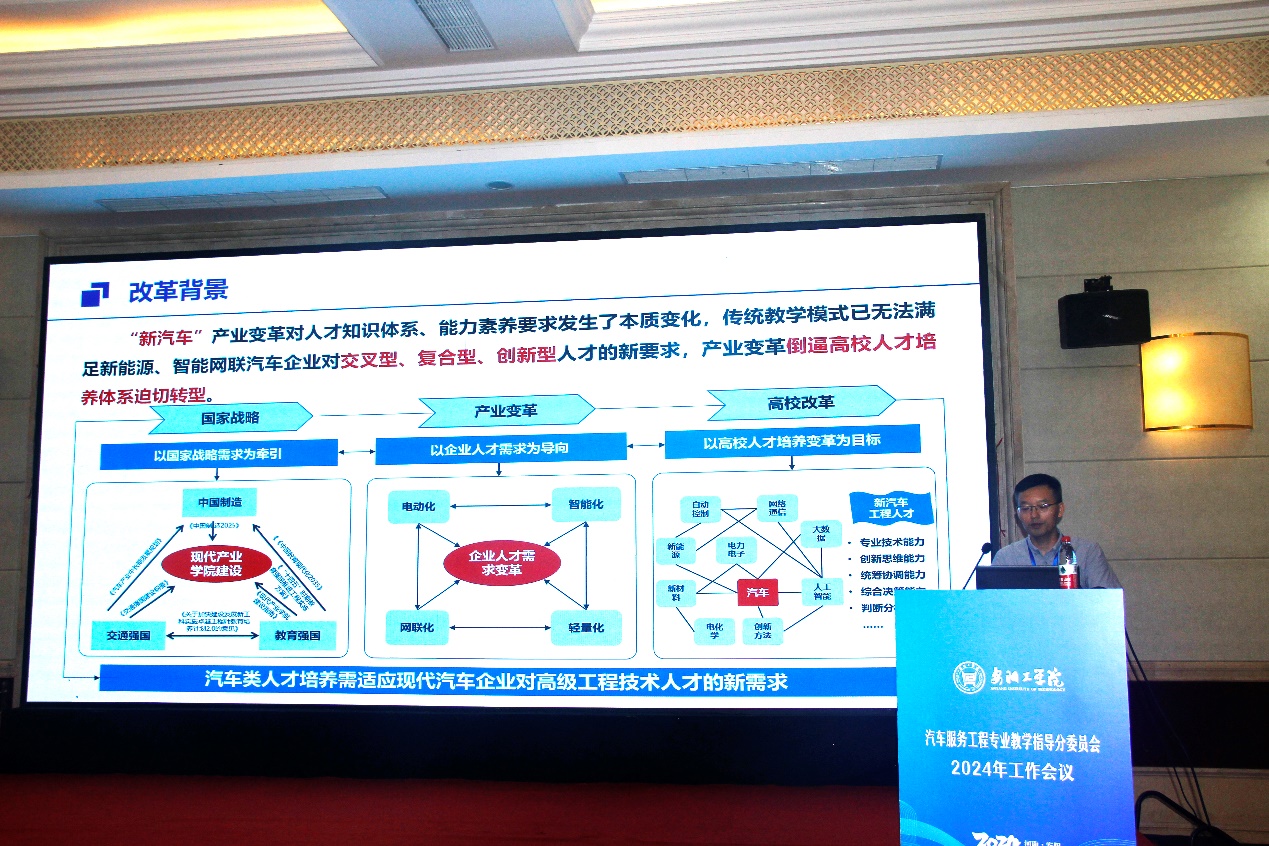 此次工作会议深入探讨了新能源与智能网联汽车技术研发与产业化的新进展和服务模式的新变化,针对汽车服务工程专业人才培养模式和课程建设进行了经验交流。杏吧邱兆文教授作了题为“产教融合人才培养模式改革与实践——杏吧 新汽车人才培养探索”的主旨演讲,全面介绍了杏吧基于产教融合进行汽车人才培养的探索收获和汽车服务工程专业的发展建设思路。会议期间,杏吧与会人员与其他高校和相关企业进行了深入交流,为杏吧汽车服务工程专业建设和发展积累了宝贵经验。