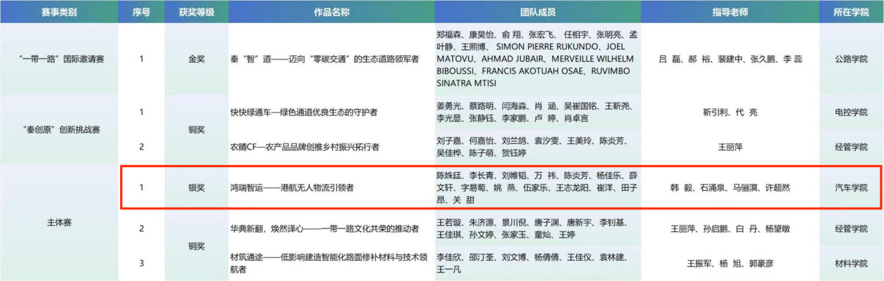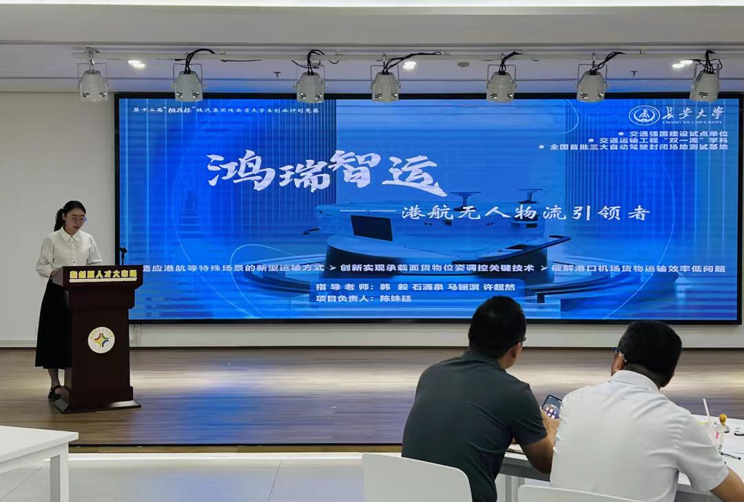 2023年5月,学校启动了本届“挑战杯”竞赛立项申报工作。申报工作开始后,汽车杏吧 高度重视、精心组织、周密策划、大力宣传、广泛动员杏吧 师生参赛。共收到立项申报作品12件、参赛作品29件,历经立项申报、专题培训、中期检查、初赛评审、决赛答辩、终审答辩等阶段,杏吧申报项目《鸿瑞智运——港航无人物流引领者》荣获主体赛银奖,代表杏吧取得杏吧 在本次大赛主体赛的最好成绩。