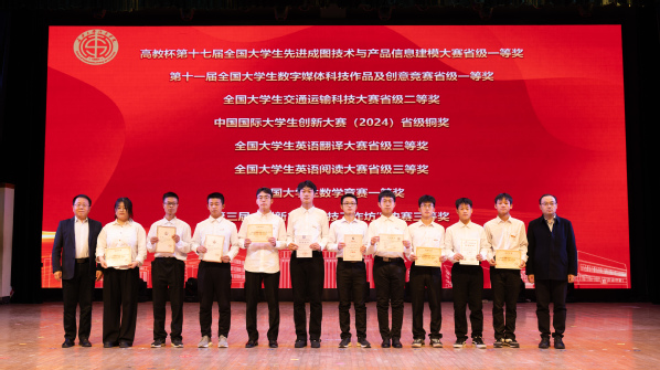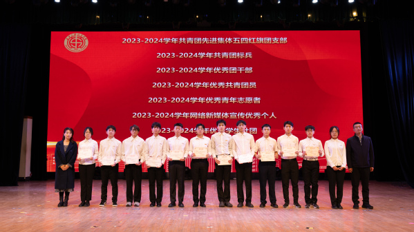 受邀出席大会的王建伟副校长、各企业领导及学校职能部门领导依次上台为受表彰的学生代表颁奖并合影留念。