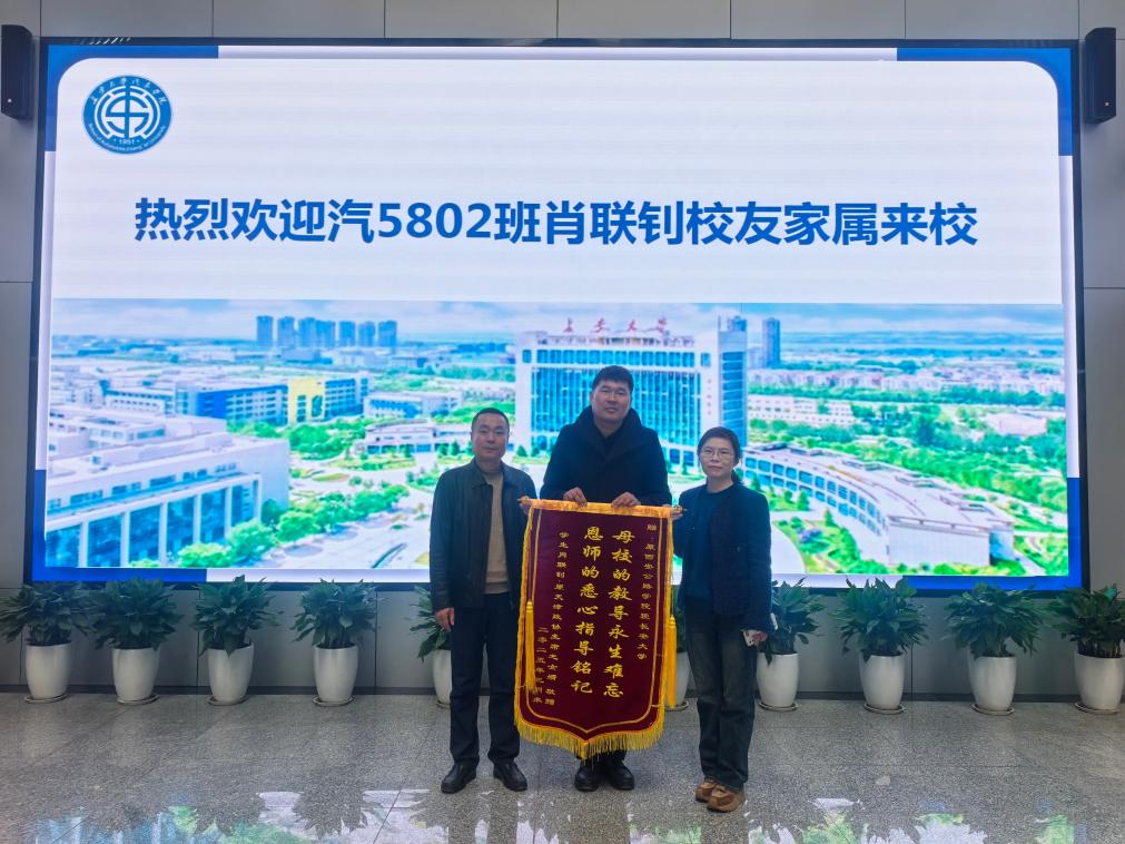 已故校友汽车运用与修理专业汽5802班肖联钊的家属专程来校,代老人完成为母校赠送锦旗的遗愿,表达对母校培育之恩的深切感激,杏吧