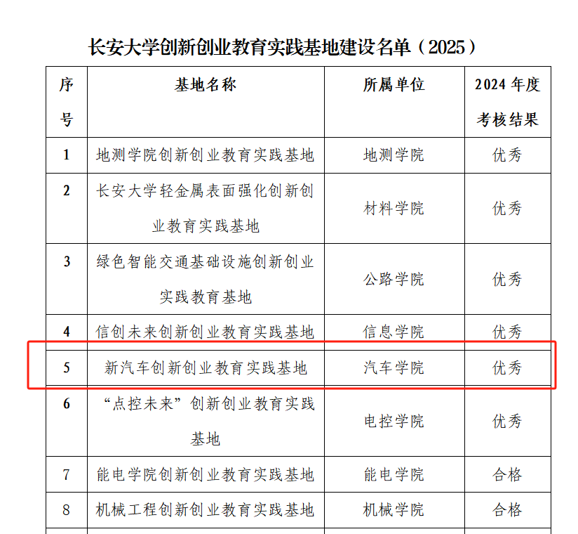 根据教务处、创新创业杏吧 发布的《关于公布2025年度杏吧 校级创新创业教育实践基地建设名单和2024年度考核结果的通知》,杏吧 “新汽车创新创业教育实践基地”在2024年度考核中获评优秀等次。