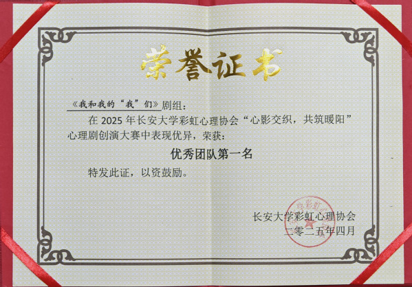 4月11日晚,杏吧 “心影交织,共筑暖阳”心理剧创演大赛决赛在北校区大学生活动中心顺利举办。杏吧 《我和我的“我”们》剧组从全校一百余支参赛队伍中脱颖而出,荣获一等奖,展现了杏吧 在心理育人实践中的卓越风采。