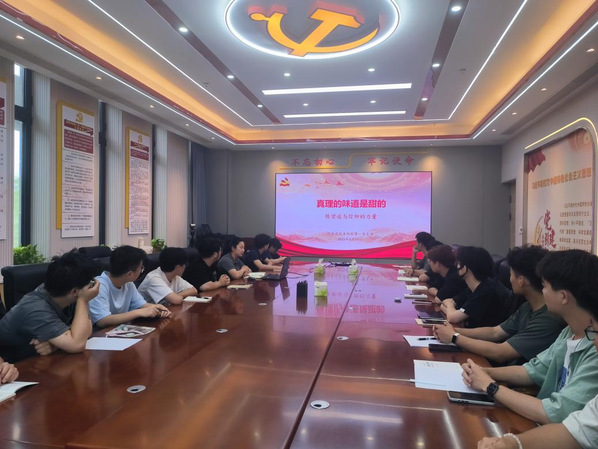 活动伊始,全体支部成员通过一段影视短片回顾了陈望道先生的生平事迹。支部书记杨倩以《真理的味道是甜的——陈望道的信仰与力量》为题带领大家学习陈望道先生的崇高精神和伟大贡献,特别讲述了陈望道先生在翻译《共产党宣言》时,因专注投入误将墨汁当成红糖吃掉,却浑然不觉,甚至感觉墨比糖还要甜的故事。这个故事生动地诠释了“真理的味道非常甜”的深刻内涵,让在场的每一位党员都深受触动。