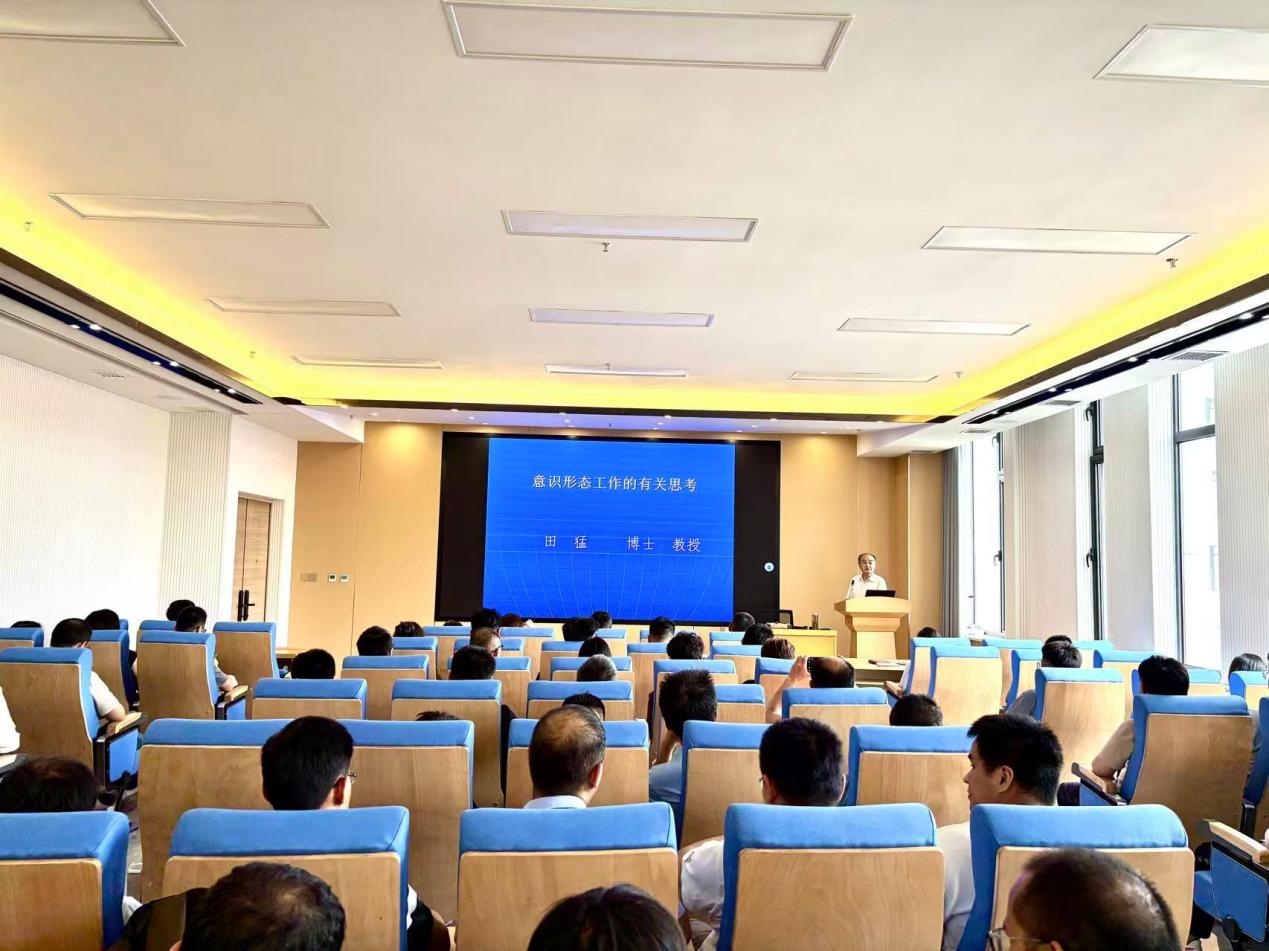 为深入学习贯彻习近平总书记关于意识形态工作的重要论述,全面落实意识形态工作责任制,筑牢意识形态安全防线,6月4日,杏吧邀请马克思主义杏吧 田猛教授开展意识形态工作专题培训讲座。全体院领导、全体教职工及学生党员代表参加培训,党委副书记、副院长、分纪委书记周姗姗主持讲座。