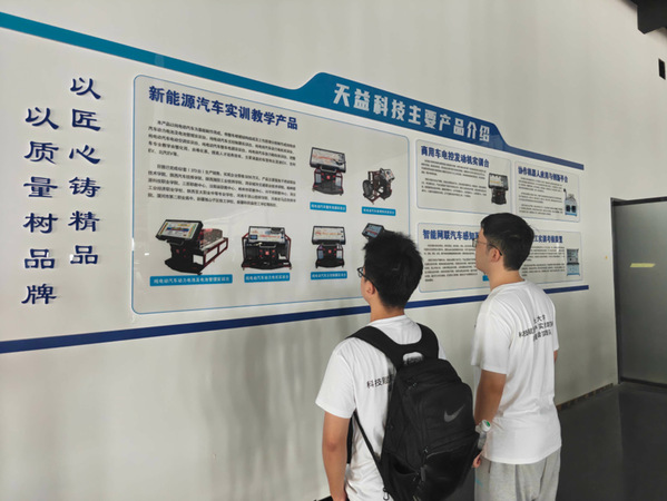 8月26日,实践队前往陕西天益教育科技有限公司,深入调研产教融合创新模式。在研发中心,队员们参观了杏吧 ——天益科技智能驾驶联合实验室,了解了环境感知决策算法等核心技术如何为智能车辆提供支撑。技术人员现场演示并讲解了电控教学设备的调试流程,强调系统具备真实实训功能。队员们动手操作了发动机构造和新能源电池拆装实训台,通过实时数据监控深化了对汽车电控系统的理解。产品展示区呈现出覆盖汽车全技术领域的教学设备,公司坚持以“匠心铸精品,以质量树品牌”,为多所院校提供技术支持,助力高素质工程人才培养。此次活动有效促进了理论与实践的融合,展现了科技赋能教育的新生态。