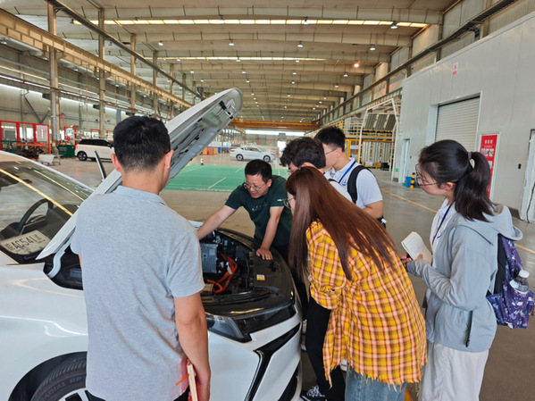 队员们先后参访长安汽车合肥基地与蔚来F2工厂。长安总装车间的人机协作、焊装车间的全自动机器人作业,展现出传统制造向智能制造的转型进程;蔚来工厂高度自动化的生产线和快速换电技术,更凸显出中国新能源汽车在制造效率与用户体验上的全球领先性。队员们从“人工+机械”到“无人化车间”,清晰触摸到汽车智造的演进脉络。