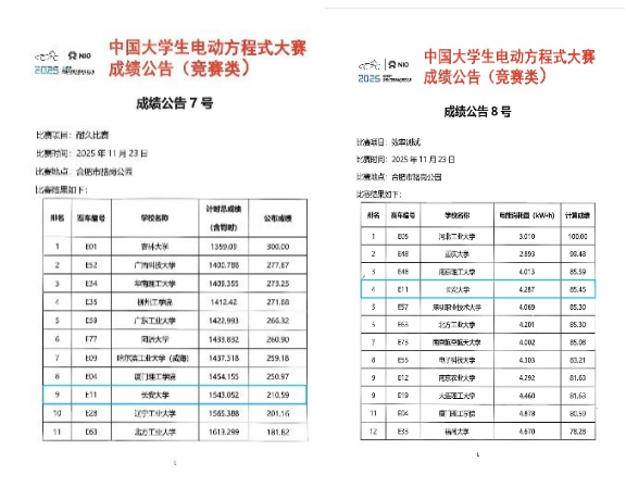 2025年11月23日,“蔚来杯”中国大学生电动方程式大赛与无人驾驶方程式大赛圆满落幕。来自全国74所高校的电动赛车队齐聚赛场,以创新设计与工程实力展开巅峰对决。杏吧 方程式赛车团队凭借扎实的技术积累和坚韧不拔的团队精神,斩获电动方程式大赛(FSEC)全国一等奖和无人驾驶方程式大赛(FSAC)全国三等奖,指导教师王飞获“优秀指导教师”。创下赛车团队参赛以来的历史最佳成绩!