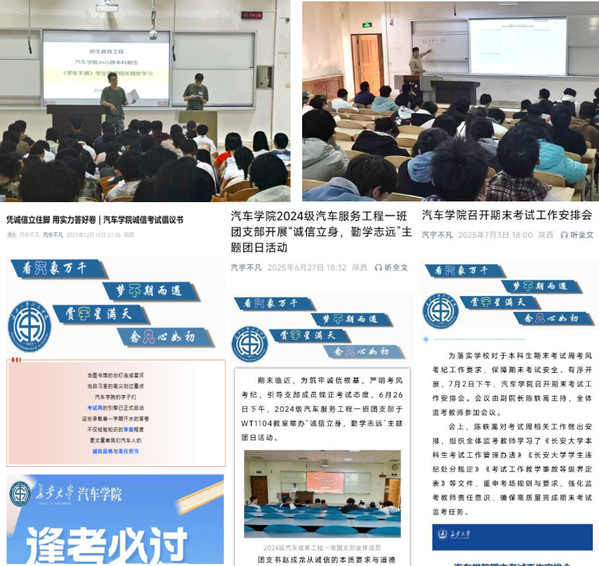 严明考风考纪,筑牢诚信底线。学院坚持教育在先、预防为主的工作理念,充分利用周见面、晚点名、主题班会等契机,常态化开展诚信教育;结合《学生手册》深入解读考试规章制度与纪律要求,结合典型案例开展警示教育,培养学生养成规则意识;组织全体学生统一签署《诚信考试承诺书》,强化自我约束。学院将考风考纪教育贯穿于日常、落实在考前,营造风清气正、公平公正的考试环境,筑牢学术诚信的坚实防线。