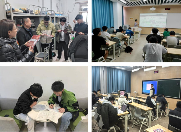 精准化助学,驱动专业成长。学院领导、辅导员、班主任定期深入学生课堂、走访学生宿舍,通过主题班会、专业认知、实习实践、科创指导等形式,帮助学生将理论与实践相结合;各年级建立家长群,定期与学生家长进行沟通交流,形成家校育人合力;定期召开“少数民族学生座谈会”、“院长面对面”等活动,为学生提供专业支持;在班级内部建立学业帮扶小组,每周开展集中学习答疑,并对重点学业困难学生实施“一对一”结对帮扶;辅导员针对成绩较差及学业预警学生及时开展谈心谈话。通过个性化辅导与持续跟踪,有效激发学生学习内驱力与主动性,营造互助共进的学习氛围。
