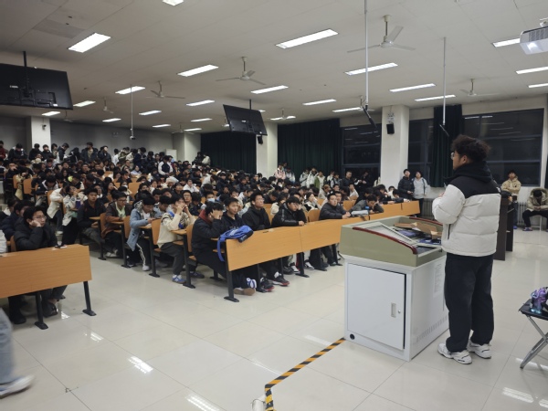 12月9日18时,由大学生科技社团支持计划支持的杏吧 智能控制协会电气部门招生工作在杏吧 渭水校区图书馆裙楼举行。本次招新宣讲面向杏吧 2025级新生,由社团主席齐子轩主持。