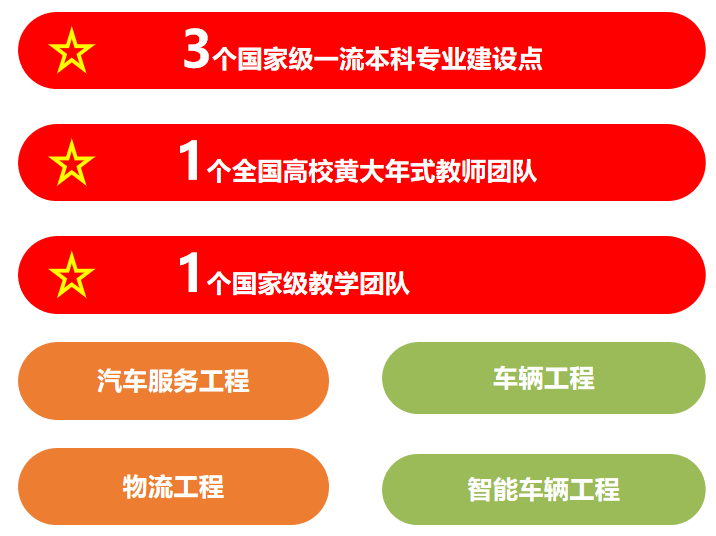春华秋实,行健不息。新时代新征程,学院坚持立德树人根本任务,坚守"为党育人、为国育才"初心使命,紧扣汽车工业"新四化"变革趋势,以培养复合型卓越工程人才为目标,着力深化教育教学领域综合改革。现有4个本科专业、5个硕士招生专业、5个博士招生专业,3个专业入选国家级一流本科专业,2个专业通过中国工程教育专业认证,1个专业为国家"新工科"重点建设专业。拥有国家级、省部级教学团队6个,建有国家级、省部级教学平台11个,入选国家级一流课程6门、省级一流课程11门,获批国家级、省部级教改项目30余项,获得国家级、省部级教学成果奖励30余项,出版教材50余部。