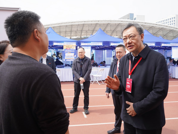 双选会期间,学校领导走进学院就业工作现场,亲切询问毕业生就业情况,与学院建联的用人单位代表沟通交流,悉心指导学院就业工作开展。